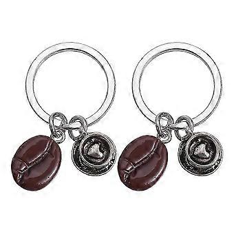 2Pc Stylish Heart Shape Coffee Bean Key Chains Backpack Pendant Assorted Color