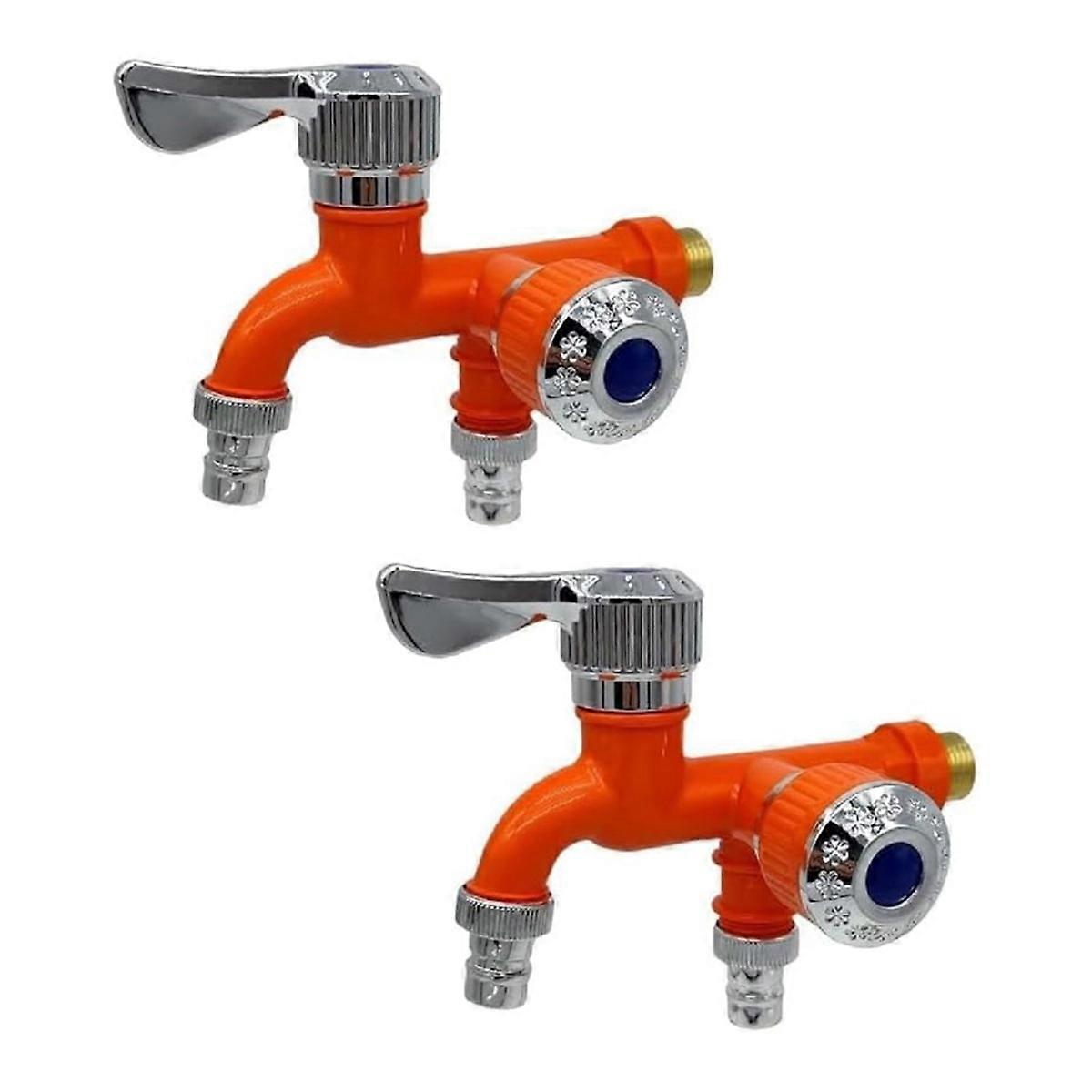 2PCS 2 Way Faucet Faucet Splitter Garden Hose Splitter Orange