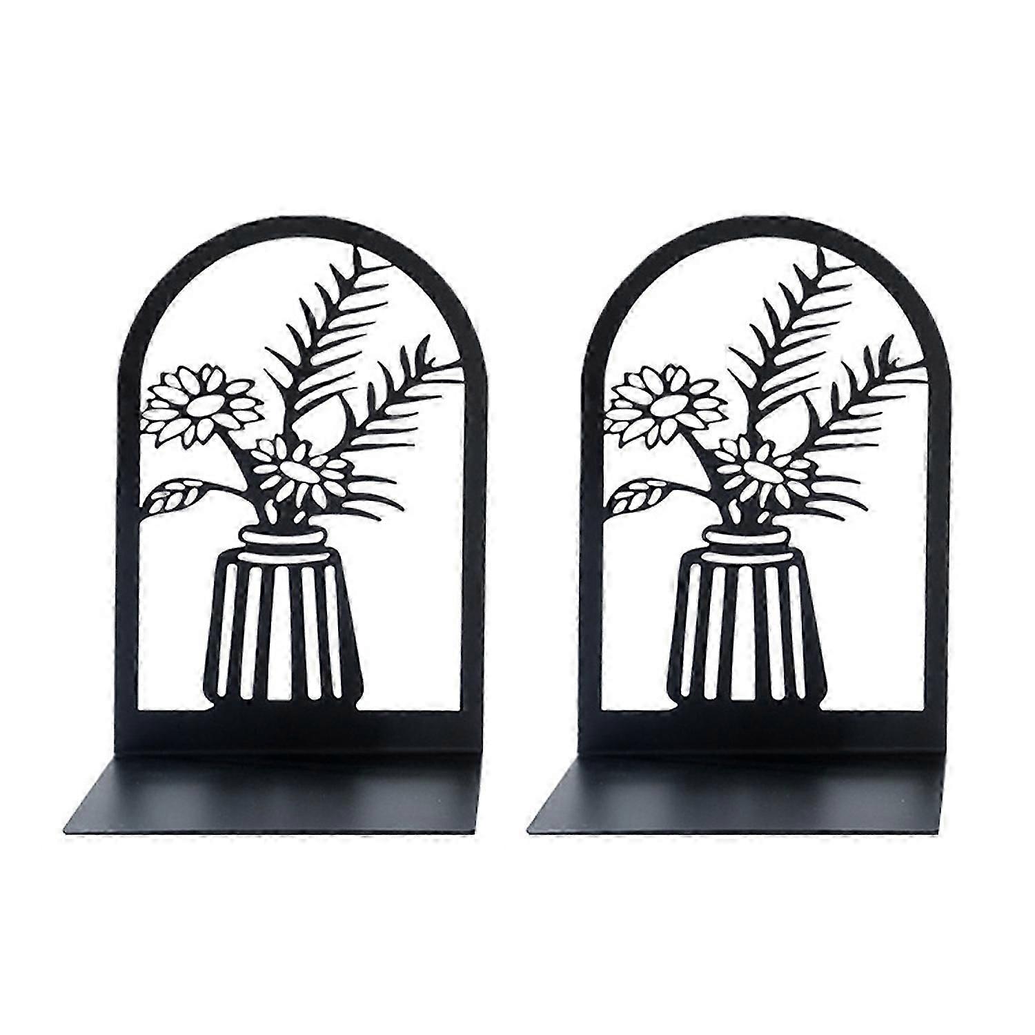 2Pcs Bookshelf Book Ends Hollow Flower Carved Pattern Vase Bookends L-Shaped Design Anti-Slip Book