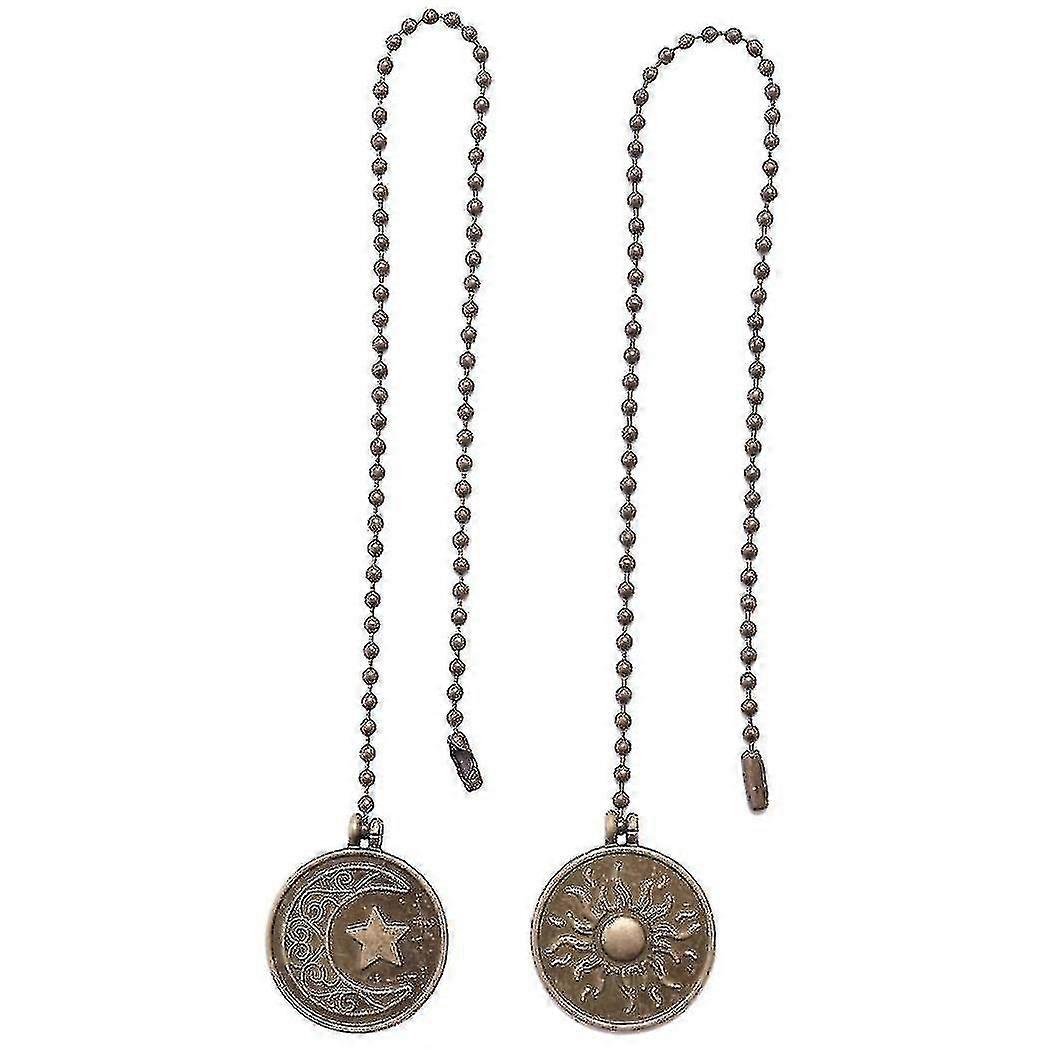 2pcs Ceiling Fan Pull Chain Set Sun & Moon Pattern Pull Chains Extension Copper Beaded Ball Fan Pul