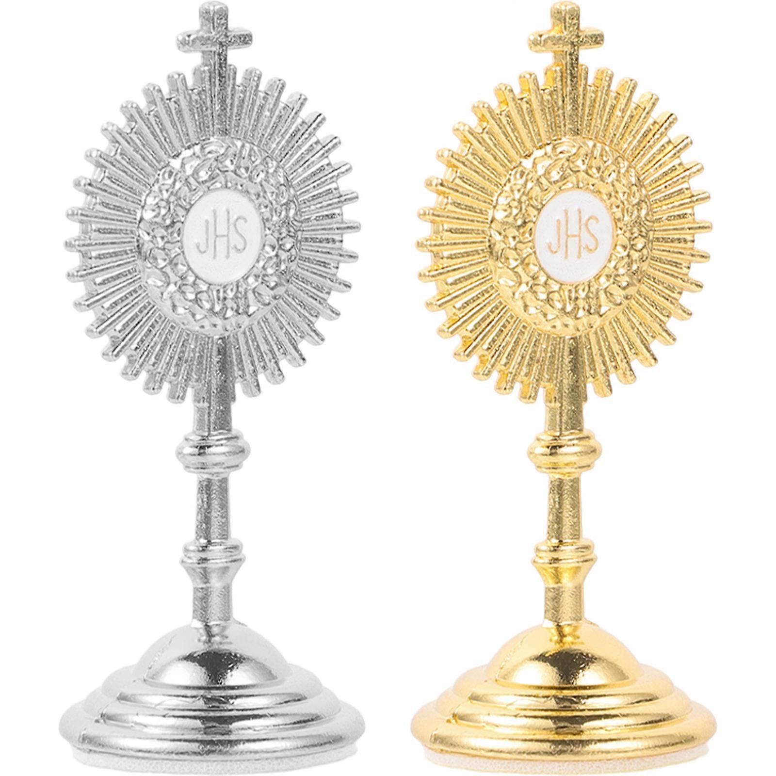2pcs Cross Elements Metal Table Decor with Sturdy Base – Unique Craft Design for Desktop Decoration, Perfect for Christmas and Everyday Use