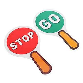 2pcs Double-Sided Stop and Go Sign Handheld Signal Sign Waterproof Traffic Control Paddle Classroom Teaching Tool Red Green Light Sign