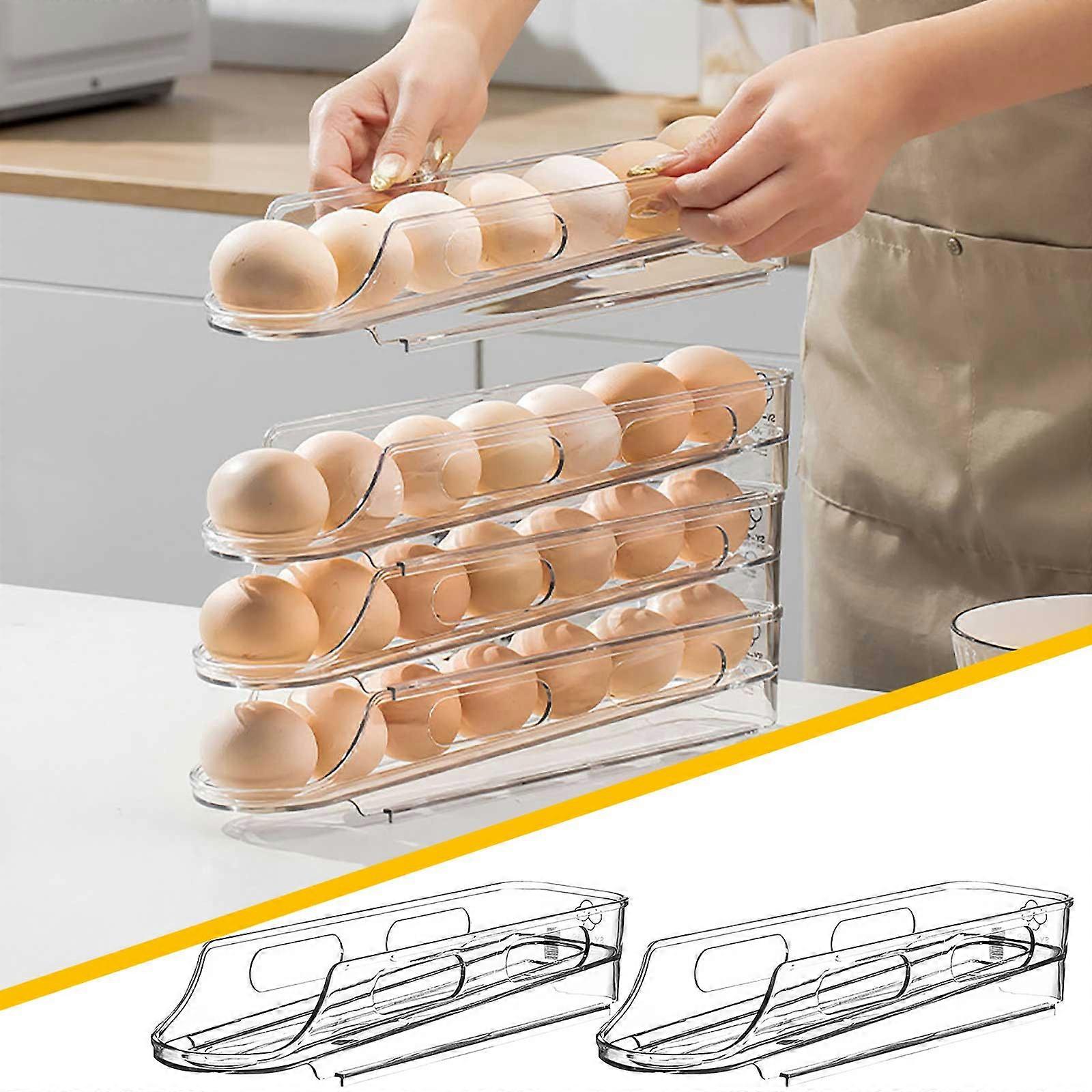2pcs Eggs Storage Box Refrigerator With Side Door Fresh-keeping Box Eggs Dispenser Space-Saving Rolling Eggs Dispenser And Organizer
