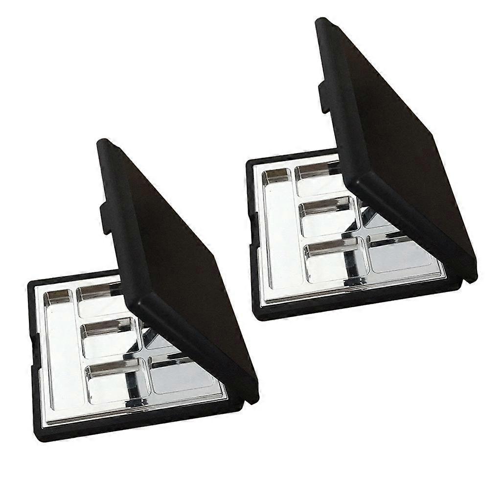 Description: Exquisite fashion large mirror can enable you to easily freshen up make-up Makeup palette for holding eye shadow, press powder, blush, lip gloss, etc. Keep your eyeshadow well displayed and guarantees its durability. and waterproof. Travel size, easy for carrying. Material: ABS + Aluminum Color: Black Quantity: 2Pcs/pack Size: 7.5 x 7.5 x 1cm/2.95 x 2.95 x 0.39 inch Package Includes: 2 Pieces Empty Eyeshadow Palette