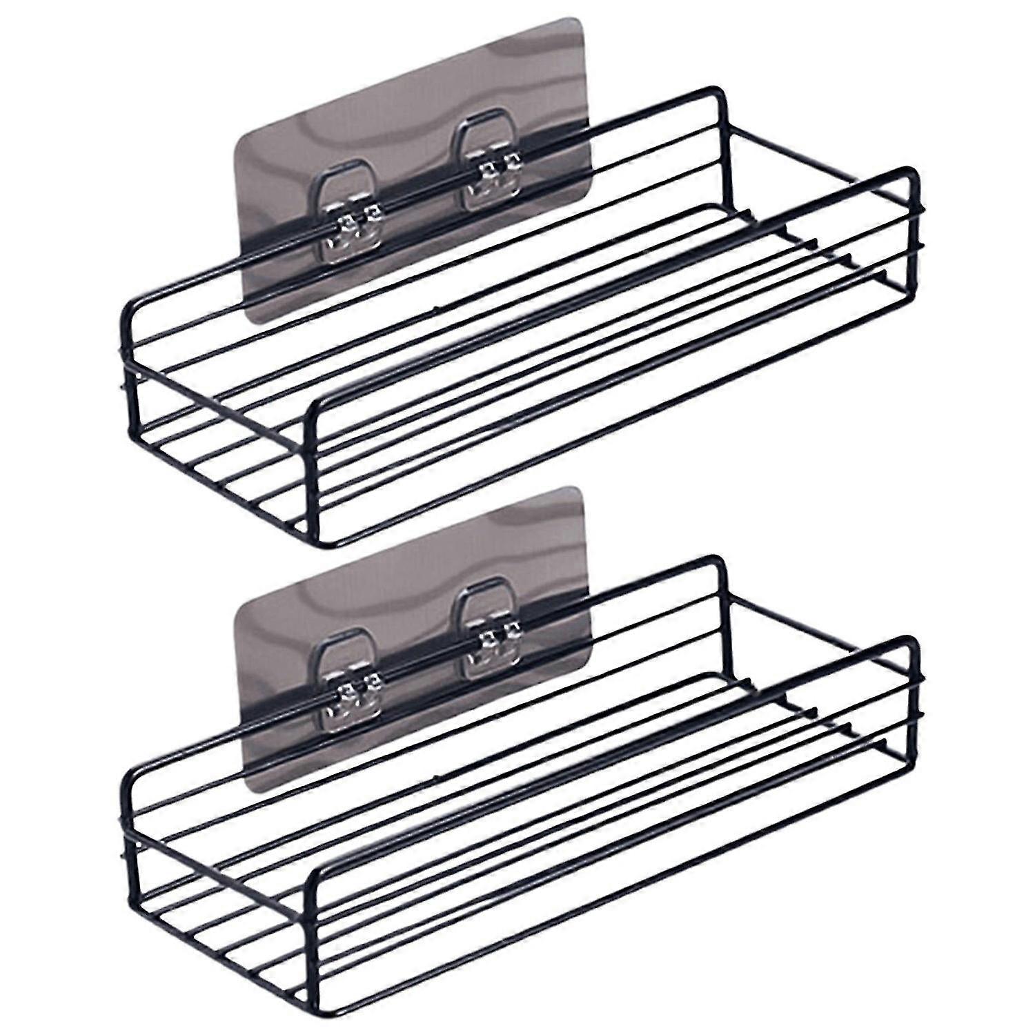 2Pcs Floating Shelves Wall Mounted Storage Rust-proof And Easy to Clean with Black Metal Frame Bedro