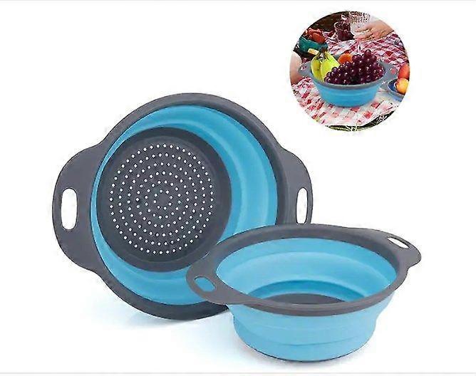 2PCS Foldable Colander-Foldable Drain Strainer Silicone Foldable Pasta - Blue