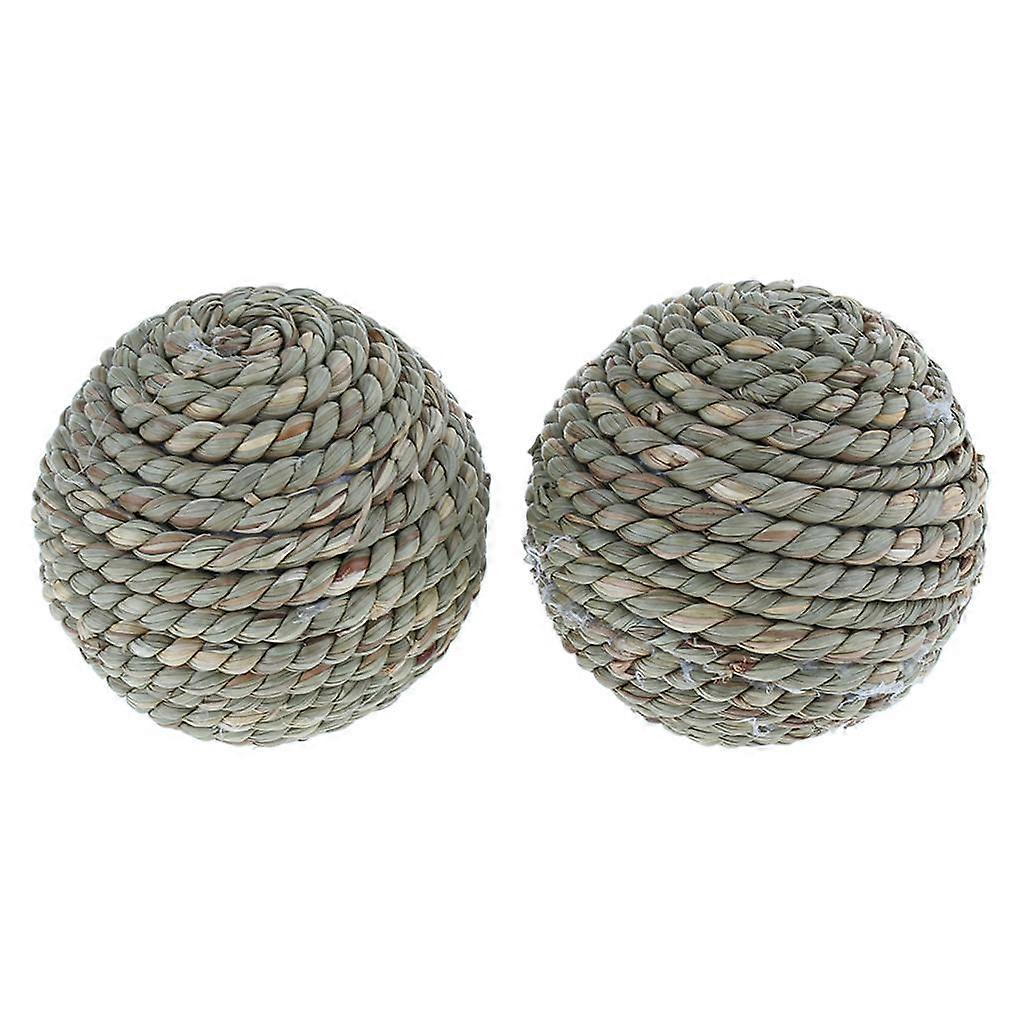 2pcs Handmade Hamster Chew Toys,Bite Resistant Rattan Straw Woven Ball For