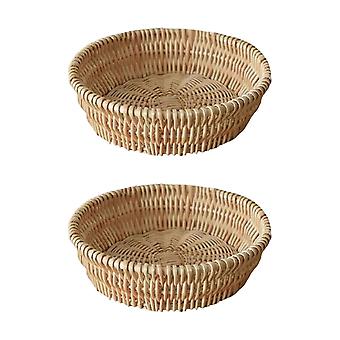 2Pcs Handmade Wicker Basket Table Organizer Wicker Bread Basket 35cm 30cm