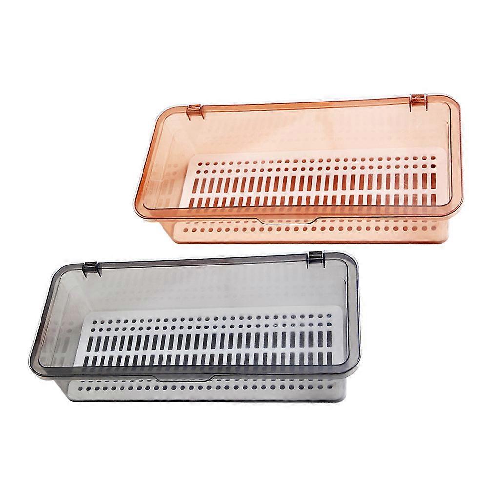 2pcs Kitchen Chopsticks Holder with Drainage, Multi Functional Storage Box with Lid for Organized Utensil Storage, Gray & Brown