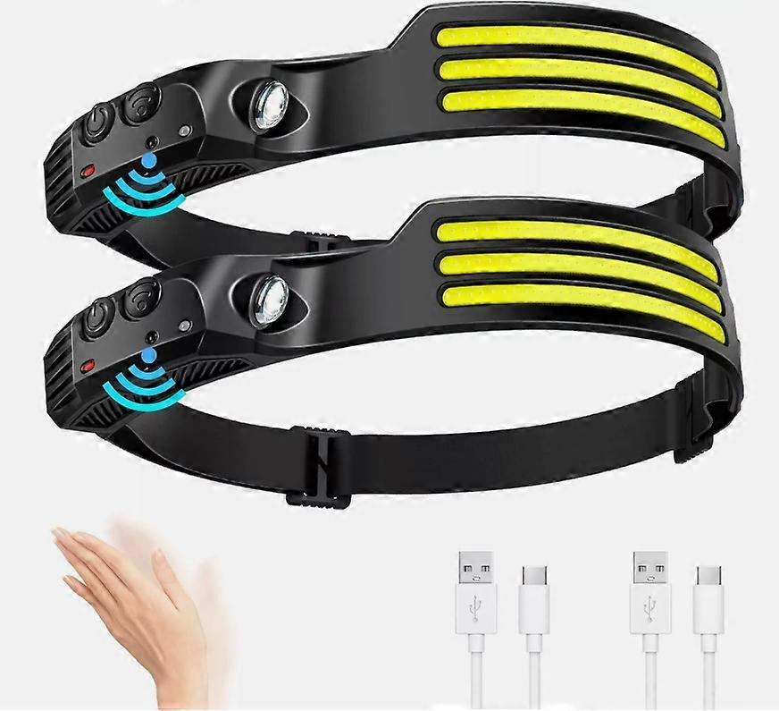 2PCS LED Head lamp Head Light Torch Flashlight Work Light Bar Head Band Lamp COB