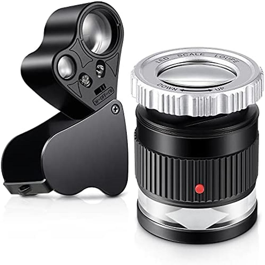 2Pcs Loupe Magnifier,30X 60X Illuminated Loupe Magnifier with LED Light Magnifying Glass Eye and 30