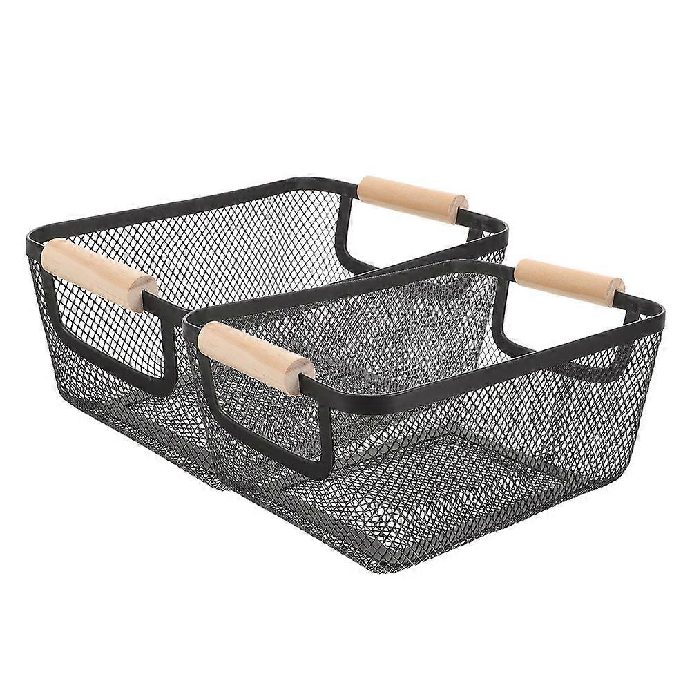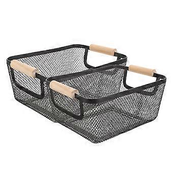 2Pcs Metal Mesh Basket for Storage Use with Wood Handle in Black
