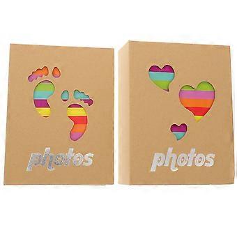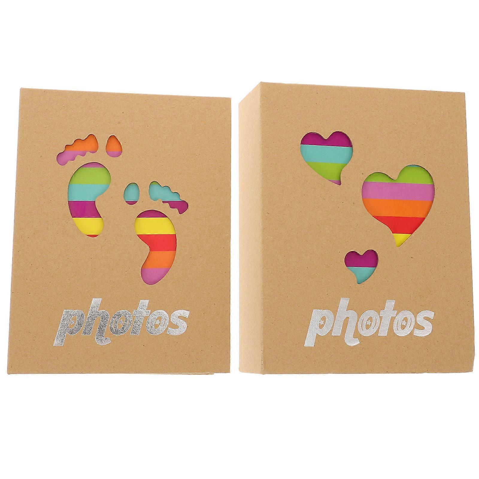 2pcs Photo Album with Kraft Paper Cover, Durable Insert Type Page Holder for Home Storage – Lightweight Souvenir Book with Heart & Footprint Patterns