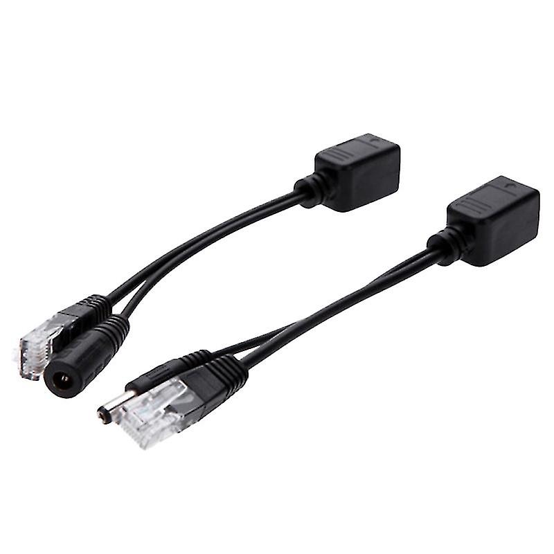 Passive PoE- means that input and output voltage are equal. Transforms Non PoE devices to PoE enabled. Supports 5V, 12V, 24V, 48V. Power supply required for power input - simply use the power supply (wall transformer) that is provided with the device you are trying to power. Feature - Color: Black. - Material: Copper. - Size: 17.5 x 1.9 x 1.8cm. - Injector: RJ45 Male + Power In to RJ45 Female. - Splitter: RJ45 Female to RJ45 Male + Power Out. - Supports: 5V, 12V, 24V, 48V. - Power plug / jack: 2.1 * 5.5mm / 0.9 * 2.2in. - Power Pins: 4,5 + and 7,8. - Length:18cm / 6.9in. - Transmission distance: 30-40 m / 100-130 ft. - Application: WLAN, routers, switches, internet telephony, security monitoring etc. - PoE injector and splitter kit with 5.5 * 2.1 mm DC jack / plug. - Use with IP security camera, wireless access point and other devices.