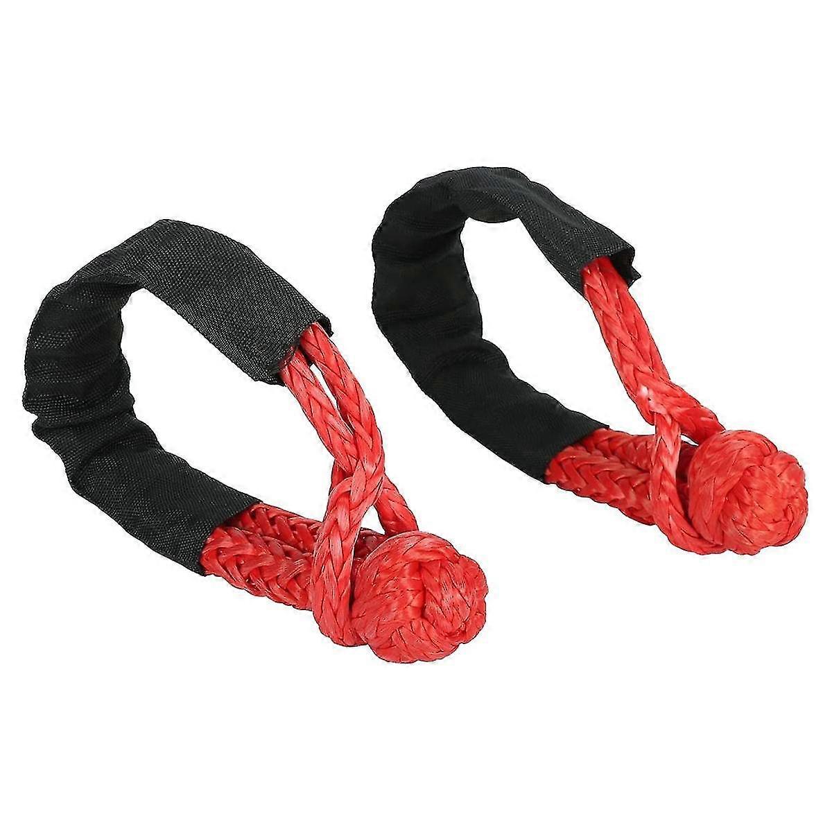 2pcs Red 1/2inch X 22inch Soft And Loop Rope Synthetic Traction Strap 43000lbs Breaking Power