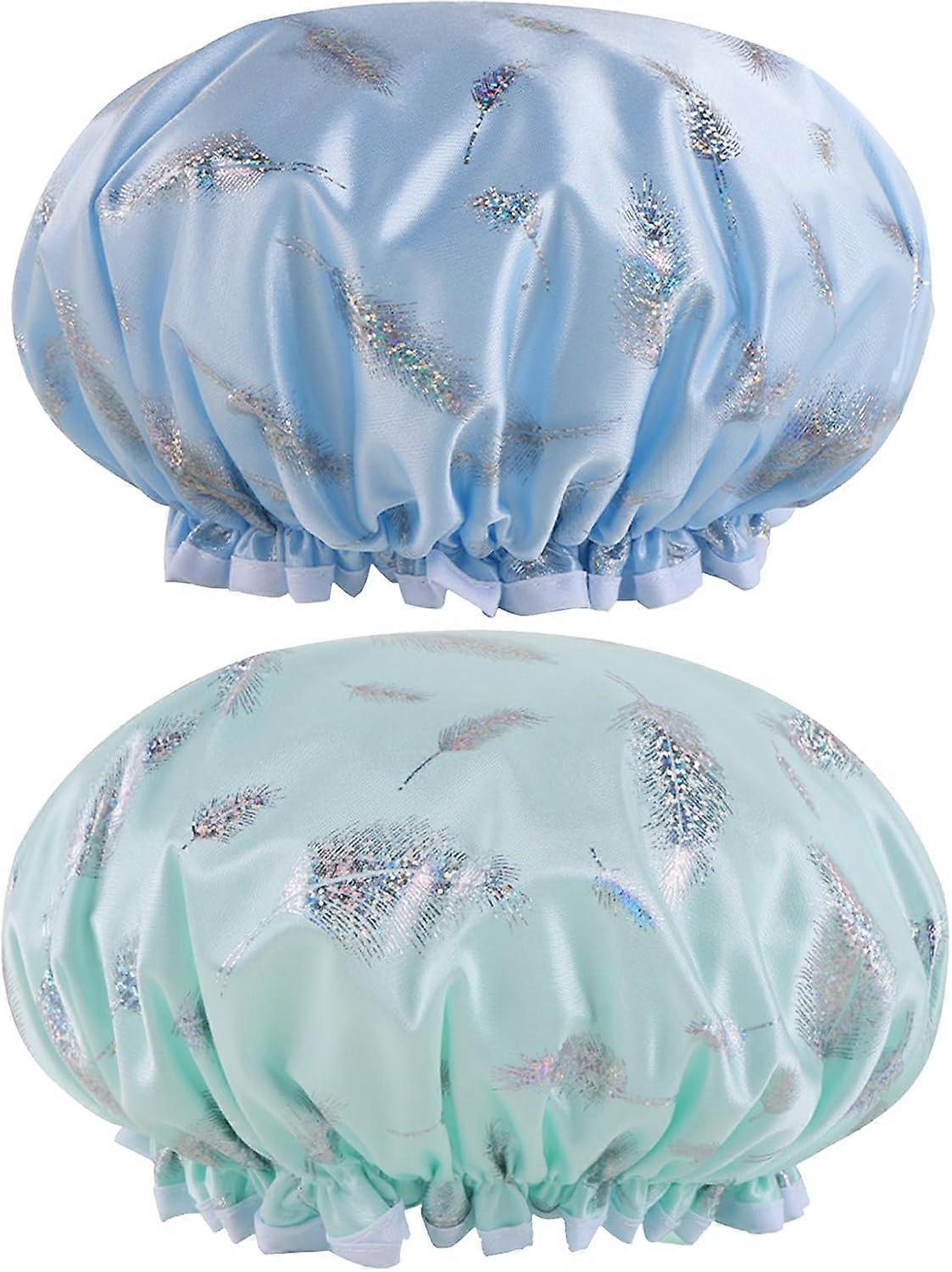 2pcs Reusable Shower Cap, Double Layer Waterproof Shower Cap