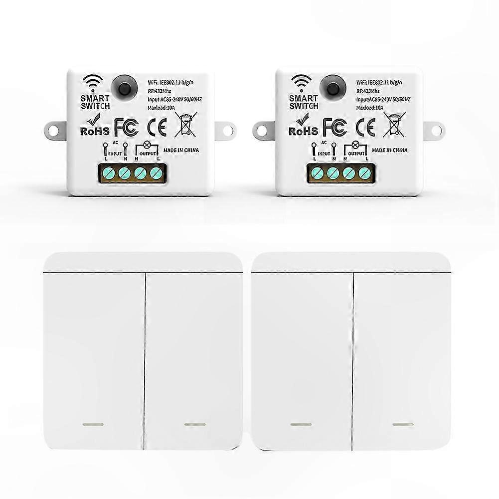 2PCS RF 433MHz Wireless Wall Switch with 2-Gang Panel and LED Remote for Lighting Control