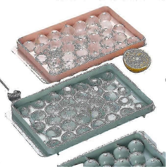 2pcs Round Ice Cube Tray With Lid Plastic Ice Cube Mold Refrigerator Spherical Ice