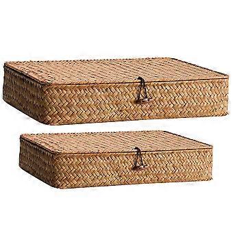 2Pcs Rustic Woven Baskets For Women Storage Holder Elegant Desktop Organizing Solution