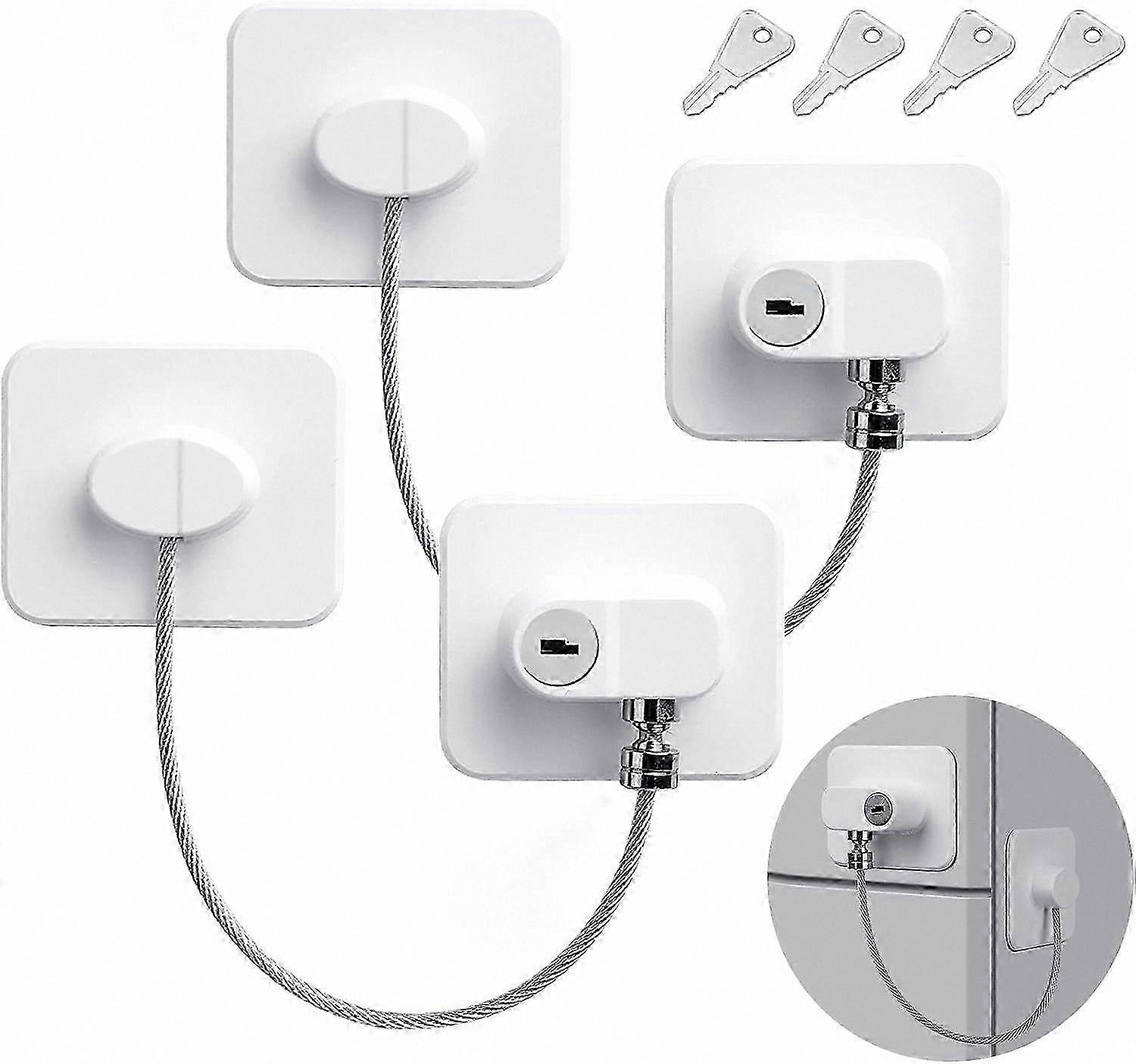 2PCS Safety Window Locks with 4 Keys, Adhesive Childproof Fridge Drawer Door Protector, Secure Window and Appliance Lock Blocks for Kids