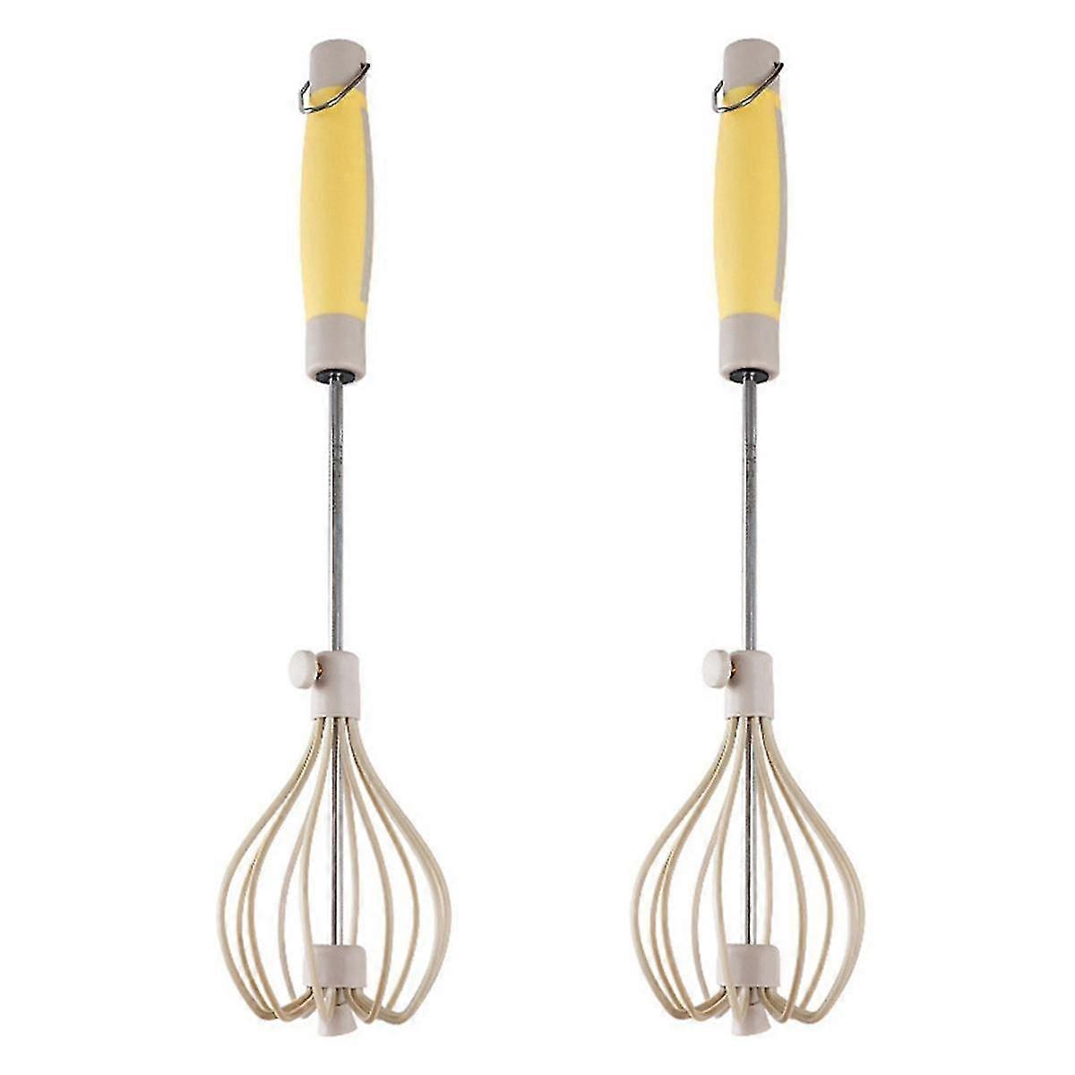 2pcs Stainless Steel Semi Automatic Whisk,rotating Automatic Eggbeater, Hand Push Mixer Stirrer Tool Manual Egg Shaker