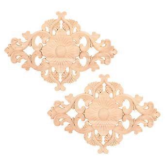2pcs Wood Carved Applique Set for Furniture with Intricate Flower Design and Optimal Dimensions