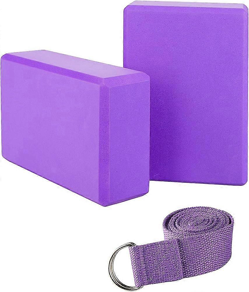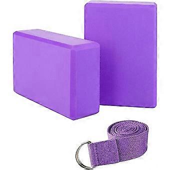 2pcs Yoga Blocks and Strap Set High Density Foam Yoga Bricks Support Deepen
