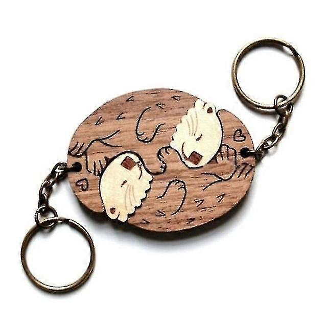 2piece Wooden-keychain Otters Shape Pendant Keyring Matching Puzzles Keychain Key-tags For Backpack Luggage