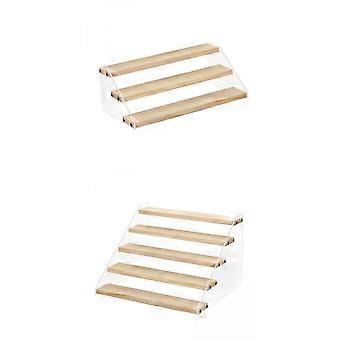 2x 3-Tier Wood Display Rack Figure Model Counter Riser Stand Kitchen