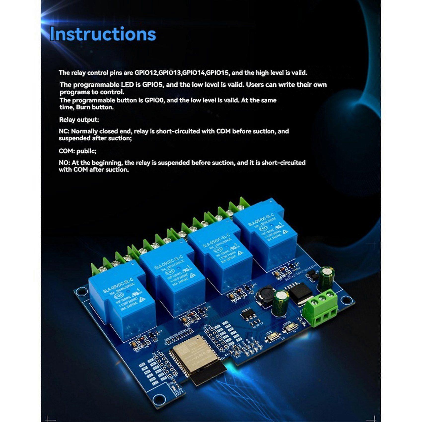2X 4 Channel Relay Module 30A DC7-28/5V WIFI Bluetooth Relay Module ESP32-WROOM Development Board