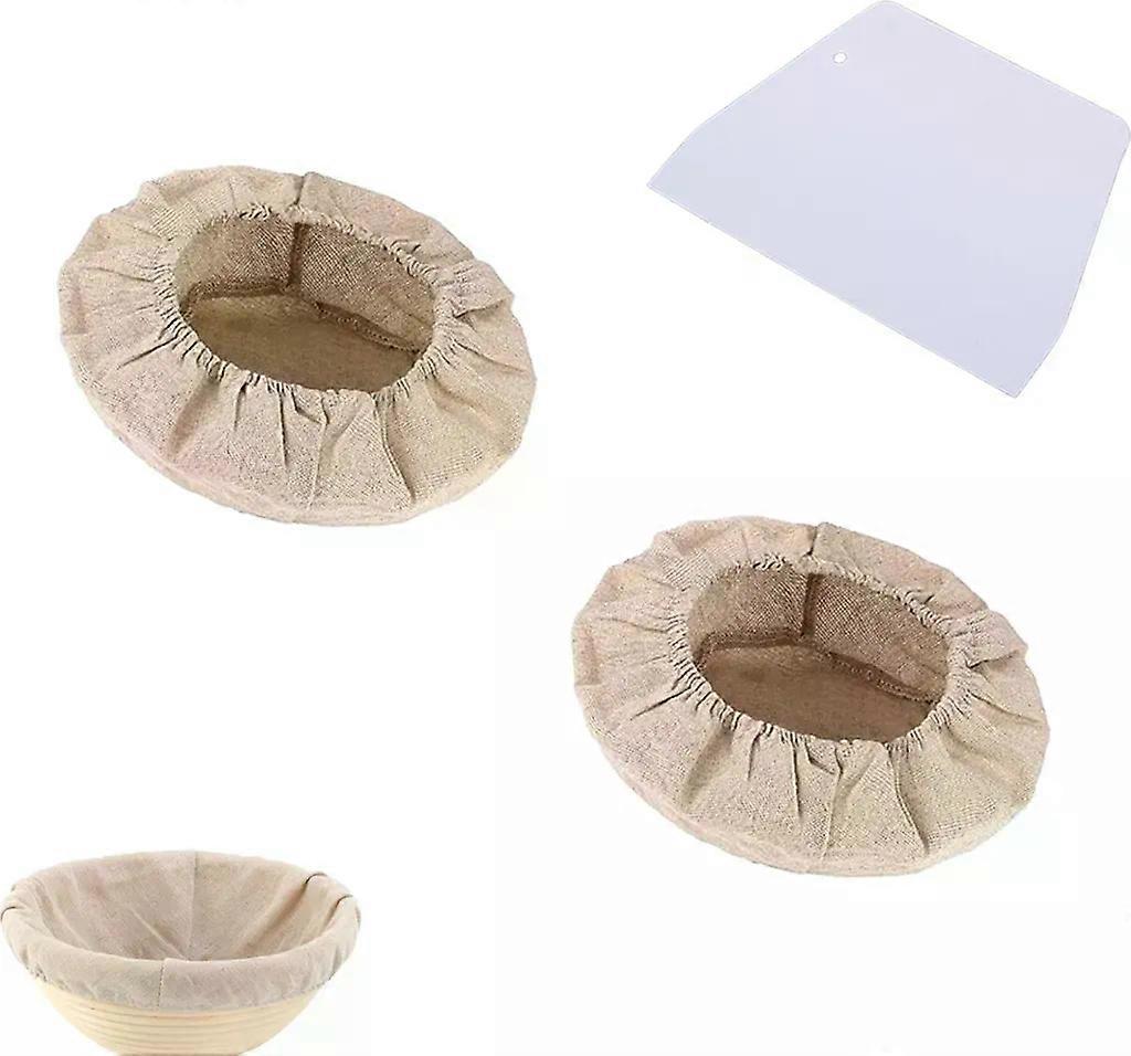 2x Baker's Linen - 25cm Linen Cloth for Bread Baking with Dough Scraper, -