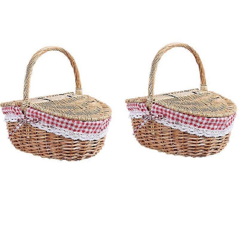 2X Country Style Wicker Picnic Basket Hamper with Lid and Handle & Liners for Picnics, Parties and B