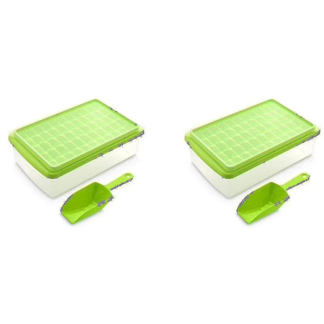 2x Ice Square Tray With Lid And Bin 55 Mini Nuggets Ice Tray For Freezer Comes With Ice Container