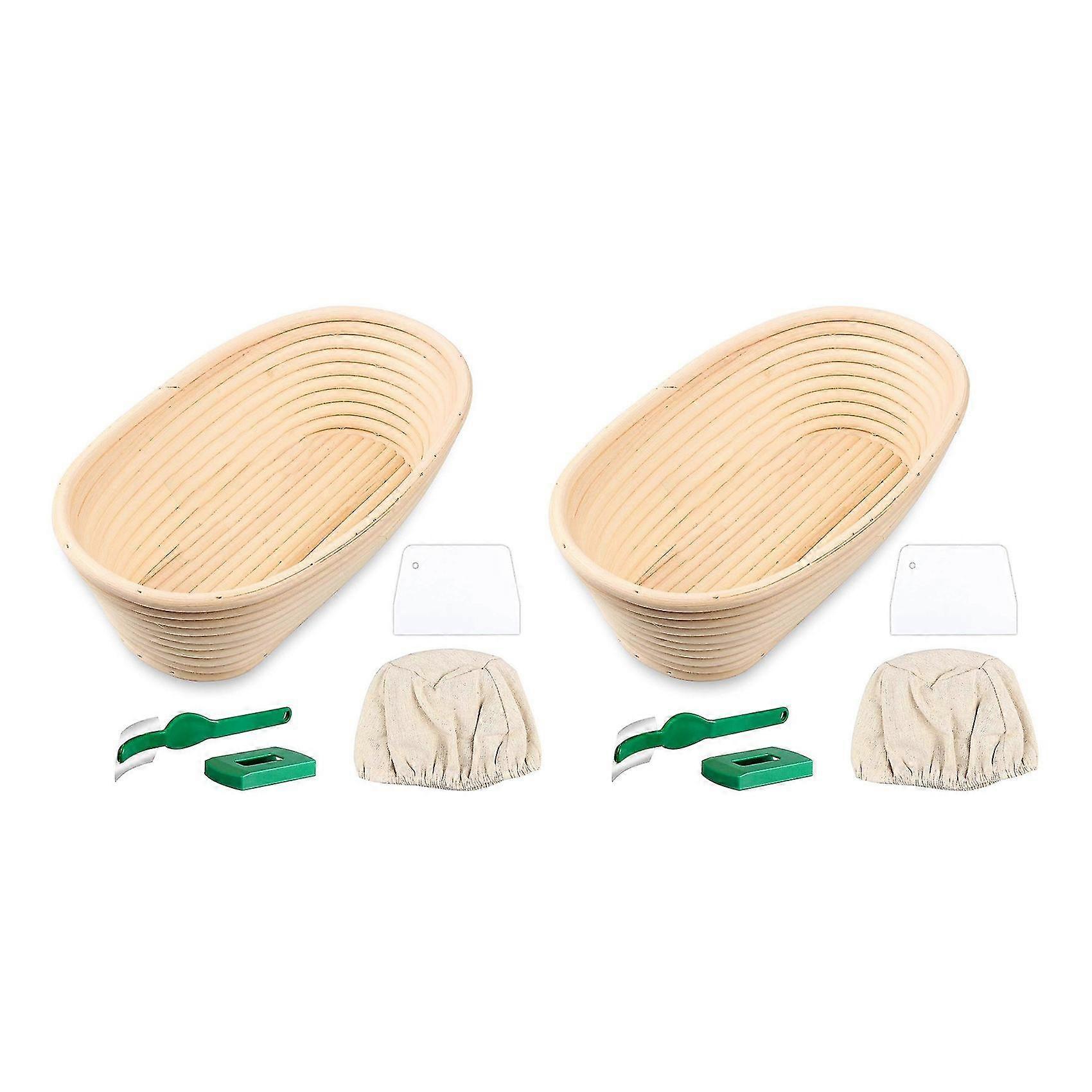 2x Oval Bread Proofing Basket, Handmade Banneton Bread Proofing Basket Brotform With Bread Lame(9.6