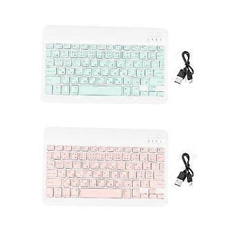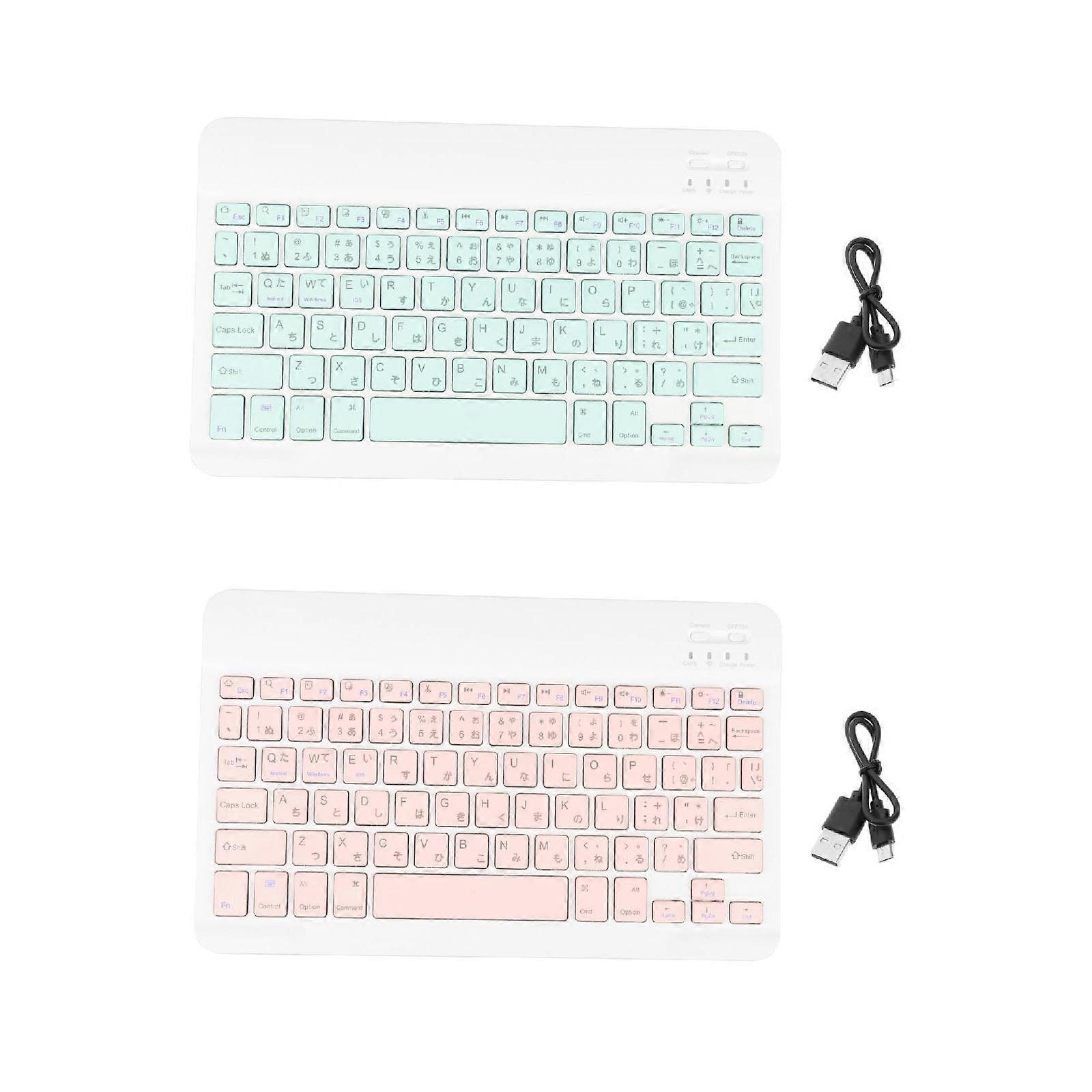 Description: Stable bluetooth 5.1, with high speed of connection, compatible with most device supporting bluetooth, such as smartphones, Tablet PC, Desktop PC, Laptop, smart tv and so on. Rechargeable lithium battery with an industry-high capacity leads a long battery life, it can last for months between charges. Small size (8.7x6.7x0.4 inch) and light weight (7.8oz) offers all keys in full size, allows easily carried and packed backpack, a bag or case. Support IOS, Android, Windows system, Japanese one-key switch function, dual- FN function key, support F* key and multimedia control key switch to use The keyboard offers quiet and comfortable typing, the texture is detailed and feels gentle, the surface is dry and not easy to get wet. Specification: Size: 22cmx17cmx1cm/8.7x6.7x0.4 inches Weight: 220g Material: plastic Package Includes: 2 Piece Keyboard (Green+Pink)