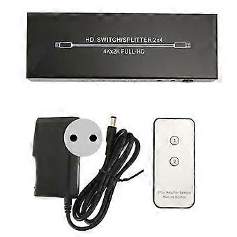 2x4 HD Multimedia Interface Splitter 2 in 4 Out 4Kx2K At 60Hz HD Multimedia Interface Switch with Remote Control 100?240V EU Plug