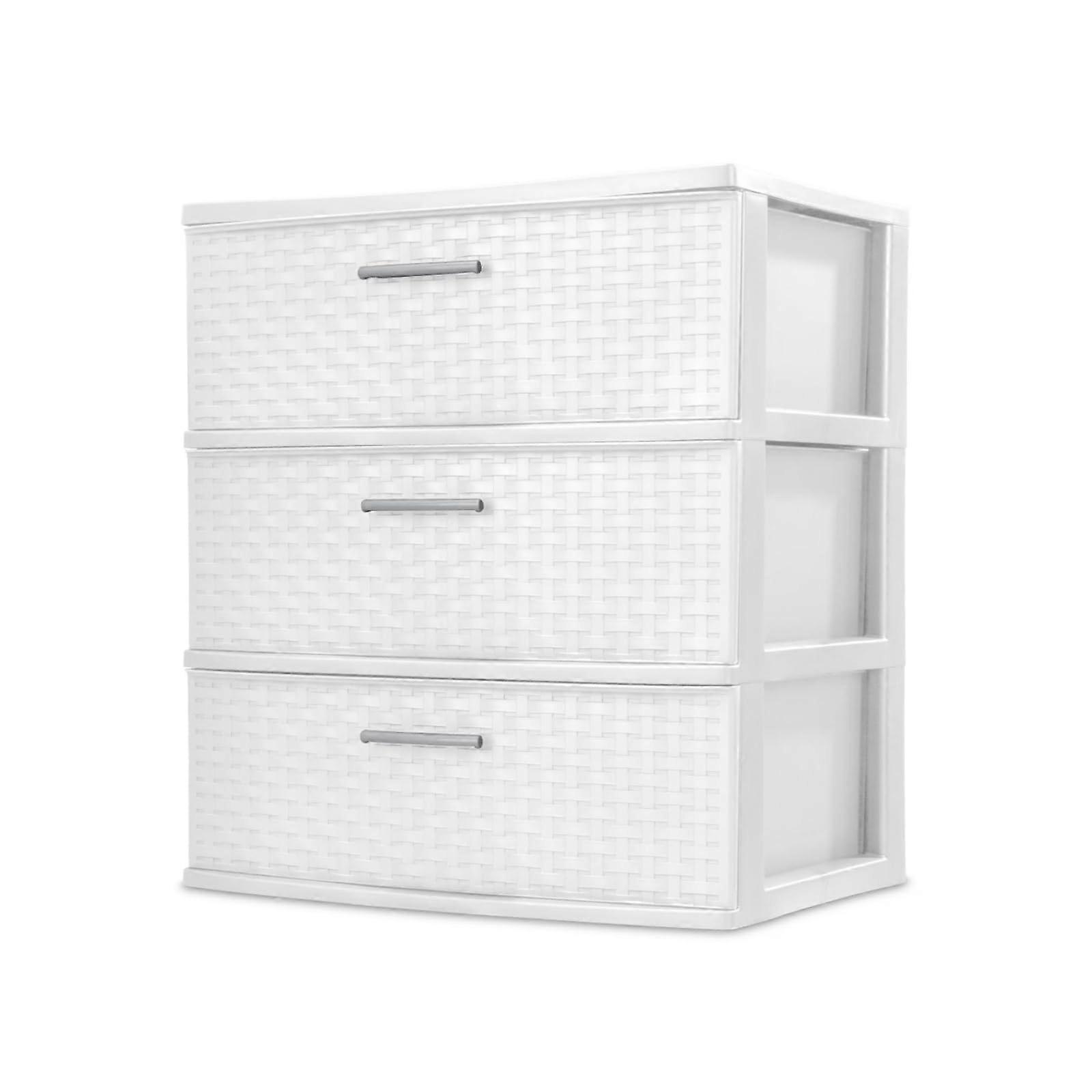 3 Drawer White Plastic Storage Organizer with Decorative Weave Design for Small Spaces
