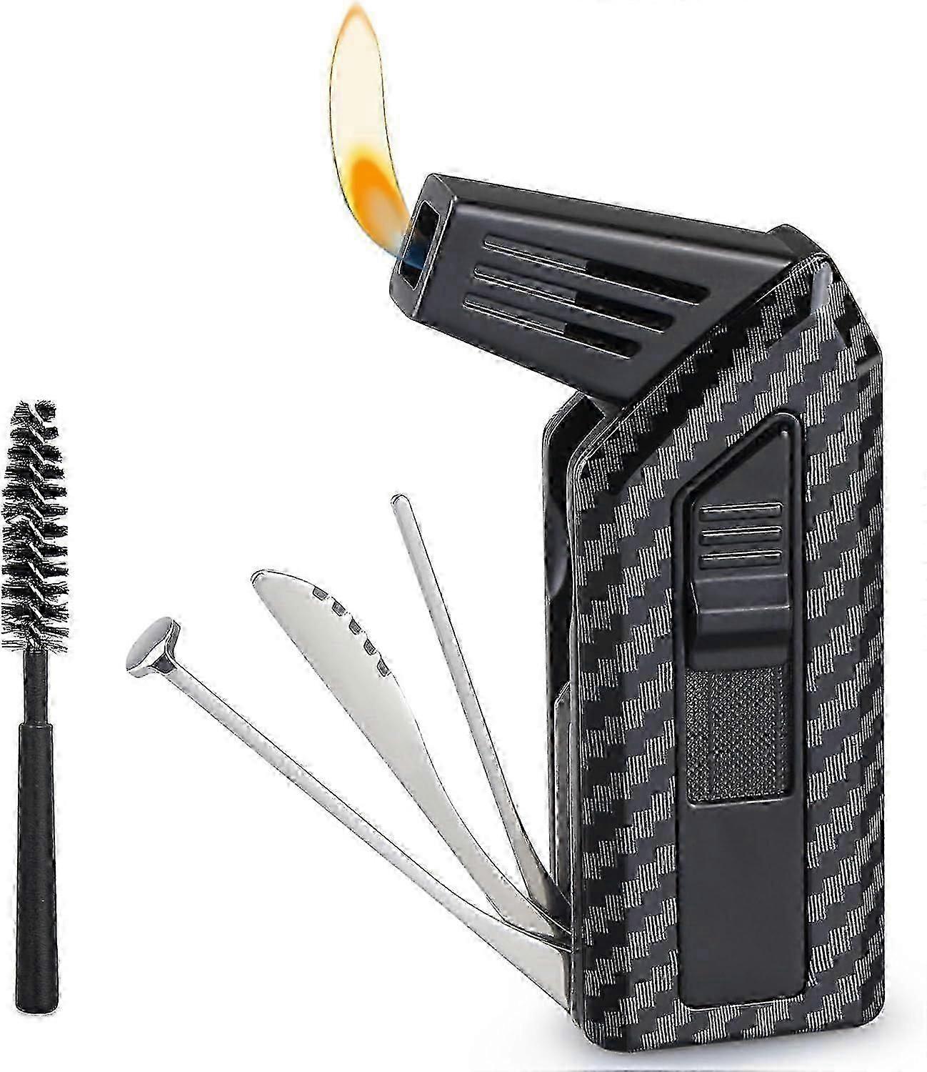 3 in 1 Pipe Lighter,Refillable Butane Lighter with 3 Pipe Clean Tool,Angled Soft Flame Pipe Lighter for Pipe Candle Fireplace,Delicate Gift with Pipe