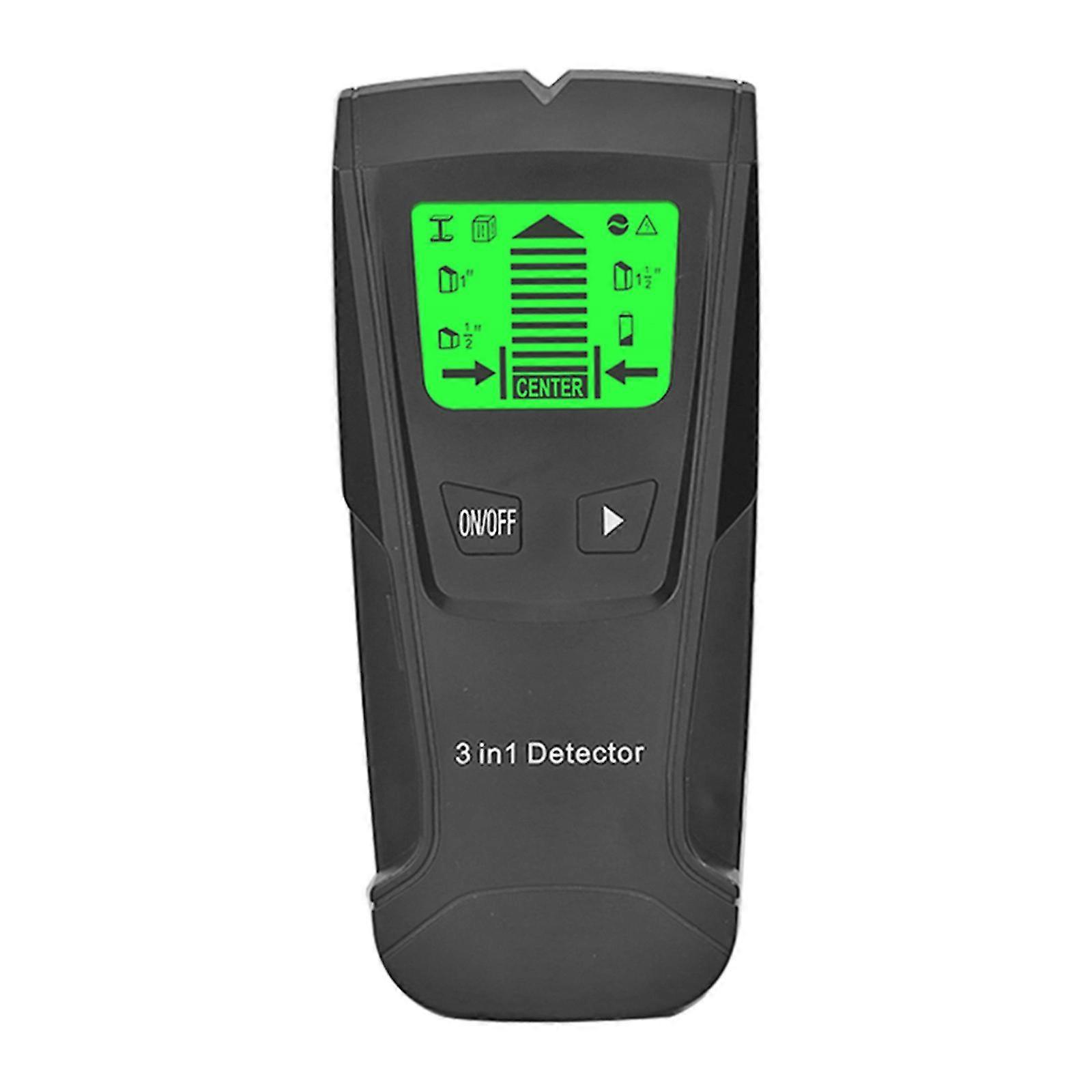 3 in1 Detector Stud Detector Sensor Wall Scanner-Electronic Stud Sensor Metal Detector With LCD product description: Wood stem center detector, with metal detection and voltage function It is used to detect the center position of the wooden stem, the position of the metal and the live wires in the walls of wooden boards and gypsum boards. Helps you quickly & easily locate wood, metal studs, joists, beams, metal pipes, rebar & live AC wire behind walls, floors, ceilings HIGHLY COMPATIBLE: our wall stud finder sensor is lightweight, long-lasting and convenient to use in your home, office, workshop. Makes all of your DIY home projects easier such as mounting your TV, bathroom cabinet, photo frame, garage racks etc. COMFORTABLE ERGONOMIC DESIGN: the ergonomic design means you can hold the wall scanner in your hand comfortably. Strong grip lets you hold the electric stud finder tightly & keep it moving correctly to get more accurate results. Suitable for all types of people specification: Quickly detect the center position of the wood stem LCD display, easy to read The center of the stalk can be detected, and the wall thickness is within 1/2 inch (13 mm) Can detect the center of the stalk, the wall thickness is within 1 inch (25 mm) Detectable wood stem center, wall thickness within 1 1/2 inches (38 mm) It can detect metals such as iron, lead, aluminum, and the wall thickness is within 2.36 inches (60 mm) It can detect live wires in the wall, the wall thickness is within 2 inches (51 mm) All detection functions have automatic correction function All detection functions are equipped with AC warning function The edge display of the stalks With low voltage display Working temperature: 0-40 Size: 15.5x7cm Battery: 1*9v battery (included) Package Contents: 1x wall detector