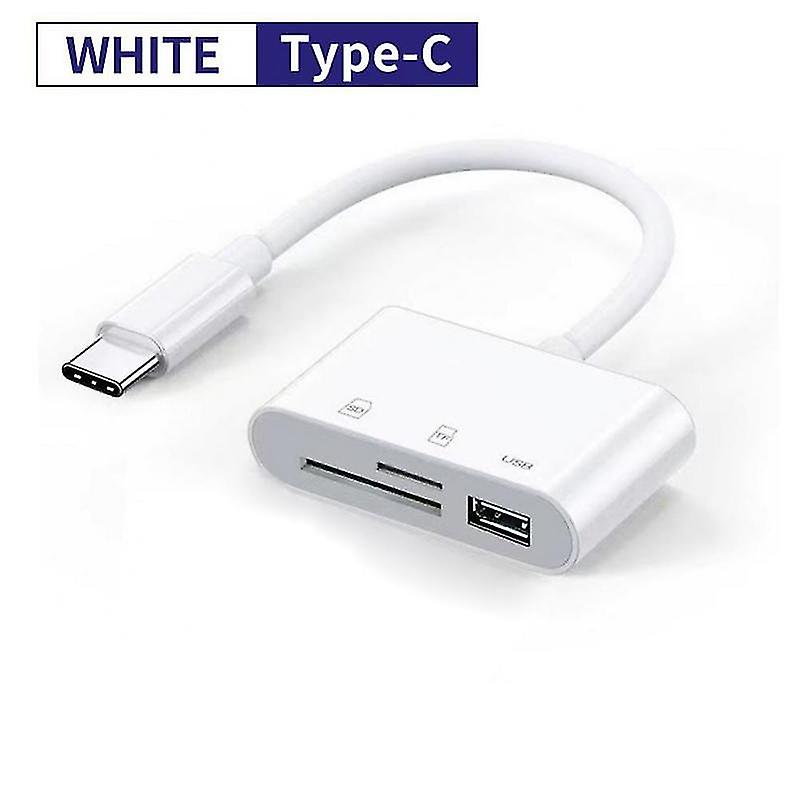 3 In1 Type C To SD Card Reader OTG USB Cable Micro SD/TF Card Reader Adapter Data Transfer For IPad Macbook Cell Phone Huawei Description: Product name: Three in one OTG card reader Product material: ABS plastic Size: 5 * 2.8 * 1.3cm, line length: 12cm Product color: Type-C white, Micro black Card slot: TF SD USB2.0 Product features: 3 card slots and 2 interfaces Interface: Micro/Type C Specifications: 1. USB-C to Card Reader: Easy to transfer photos videos and backup data to your MacBook, laptop, smartphone and tablet. 2. Plug & Play: Reads and writes either SD or Micro SD card and USB-A device simultaneously. 3. USB 2.0 Port Extend: The USB C card reader also features with USB A female port, conveniently allows you to connect USB peripherals, such as USB flash disk, mouse, keyboard, wireless receiver. 4. Compact and Easy to Carry: Fits prefectly into phone/tablet with case on. Does not obstruct the adjacent USB-C port. 5. Plug and play, support hot swapping Package Included: 1*card reader