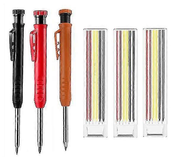 3 Pack Solid Carpenter Pencil With 21 Refill, Long Nosed Deep Hole Mechanical Pencil Marker With Built In Sharpener for Carpenter Gift
