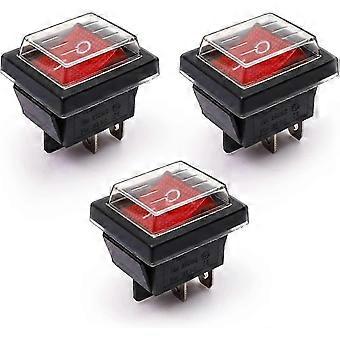 3-Pack Waterproof Rocker Switches, DPST 16A/250V AC 20A/125V AC with Red ON/OFF Toggle and Protective Cover
