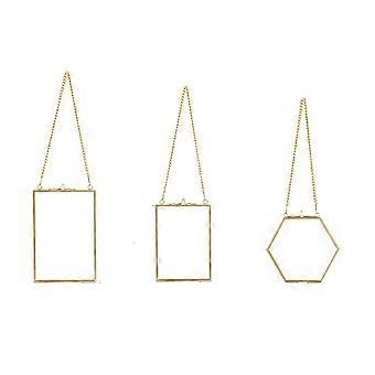 3 Packs Pressed Flowers Glass Frames- Golden Hanging Glass Picture Frames with Chain Floating DIY Artwork Display Frames