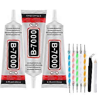 3 PCS 110ml B7000 Glue Clear with Precision Tip, B7000 Rhinestone Glue Set, Craft Glues with 5-Poin