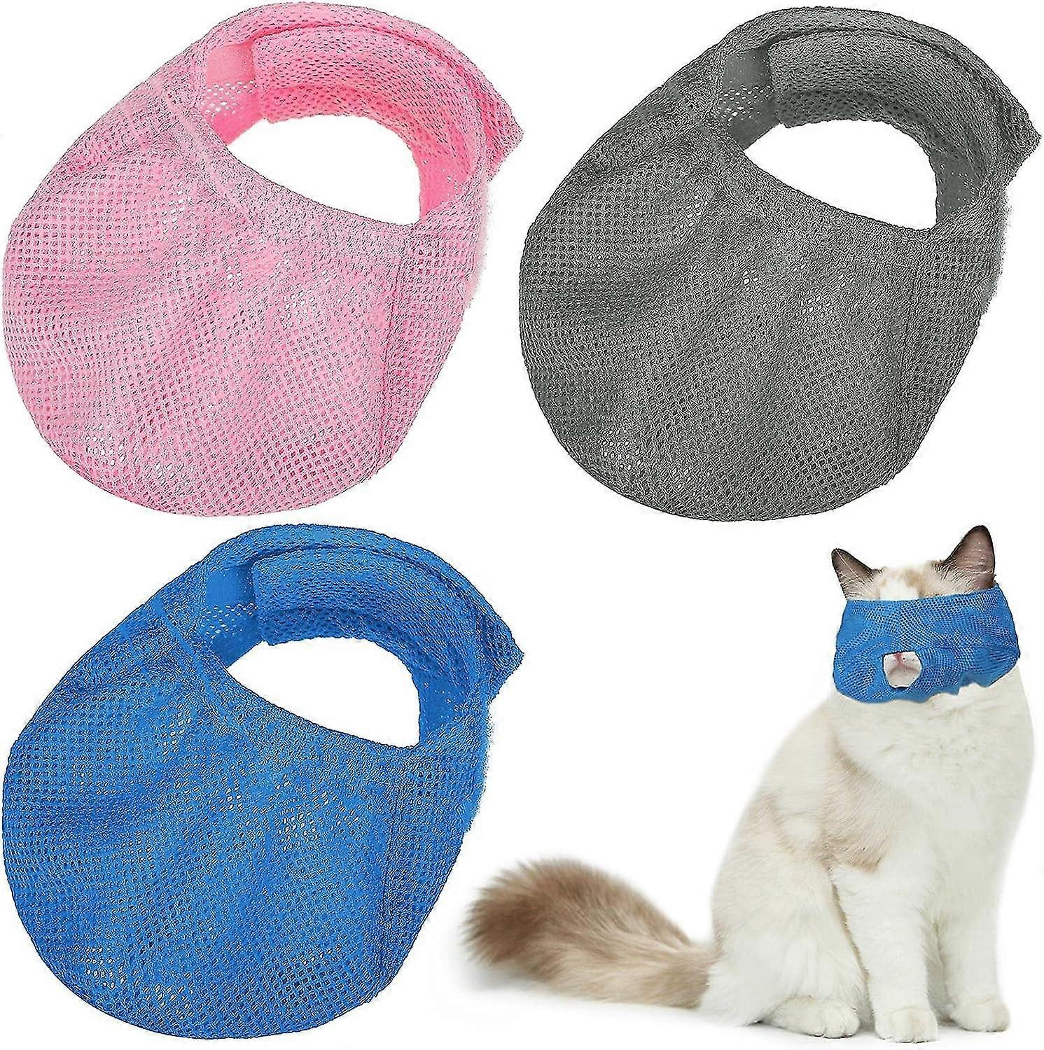 3 Pieces Cat Muzzles Breathable Mesh Muzzles Cat Grooming Restraint Bags With Muzzle Anti Bite Anti Meow For Prevent Cats From Biting Blue, Pink, Gray