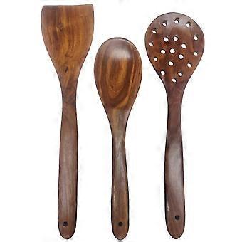 3 Set Wooden Teak Wood Spatula Spoons for Cooking Serving Set of 3