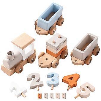 3 Sets Of Wooden Train Toys For Toddlers And Children To Enhance Imagination Development In Learning Activities With Light Brown Color
