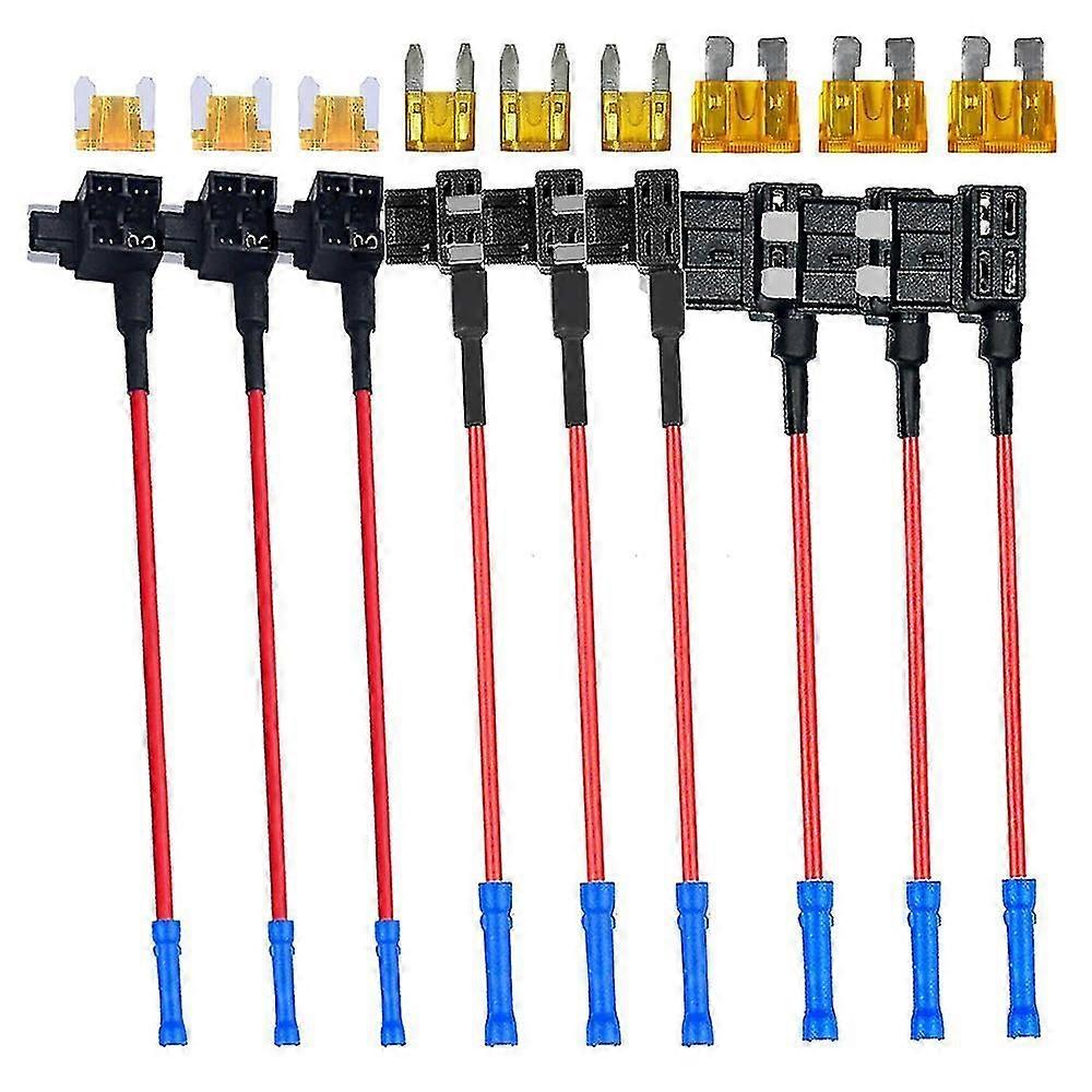 DUAL-SLOT FUSE HOLDER - It provides one fuse holder to protect circuit and provides a lead with the second fuse holder for new circuit. EASY TO USE - Plug into an existing fuse holder. Easy to install the additional circuits without splicing or cutting. WIDELY APPLICATION -assorted add a circuit Fuse Tap Adapter kit commonly fits for blade fuses (rating 2Amp-40Amp). 3 Types:1.Low profile mini fuse adapter fits for Korean Cars;2.Mini fuse adapter fits for Japan and US Cars;3.Standard fuse adapter fits for European Cars. Perfect for car alarm, cell phone charger, GPS, DVD player, dash cam, etc Type: Low Profile Mini & Mini & Standard Add-a-circuit blade fuse holder; Cable Type: Heavy duty 16 gauge red color wire; Support Fuse: blade fuse. (rating 1Amp-30Amp); new & high quality Compatible with 12/24v vehicle electrical systems Easy to add a fuse to protect car alarm, dash cam,DVD player, GPS, Cell phone charger, etc. Fits for Most Vehicles (such as cars, trucks, SUVs, , boats and RVs), Car Electronic Device (eg: Dashboard camera, radar detector, GPS, car recorder, car alarm, radio, DVD player and other electronic devices.),Boat (for adding LED strip, DVD player, GPS, radio and other electronic), GPS and Circuit Diagram, etc How tio Use: 1. Just crimp a fuse tap on the end of wire; 2. Plug and play at the fuse box. 3pcs colour:black Material:ABS Package Contents: 3x Low profile mini fuse adapter 3x 5 Amp low profile mini blade fuse 3x Mini fuse adapter 3x 5 Amp mini blade fuse 3x Standard fuse adapter 3x 5 Amp standard blade fuse Only the above package content, other products are not included. Note: Light and different displays may cause the color of the item in the picture a little different from the real thing. The measurement allowed error is +/- 1-3cm.