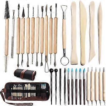 30 PCS Clay Sculpting Tools, Ceramic & Wooden Pottery Carving Set with Portable Bag, Art & Craft Kit for Beginners