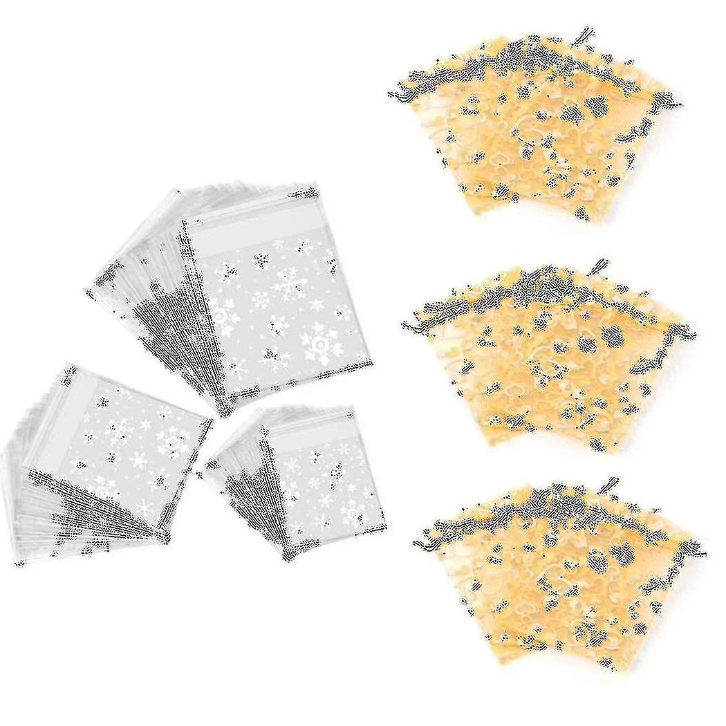 300 Counts Resealable Cellophane Snowflake Gift Bags With 100pcs 9x12cm Sheer Drawstring Heart Orga